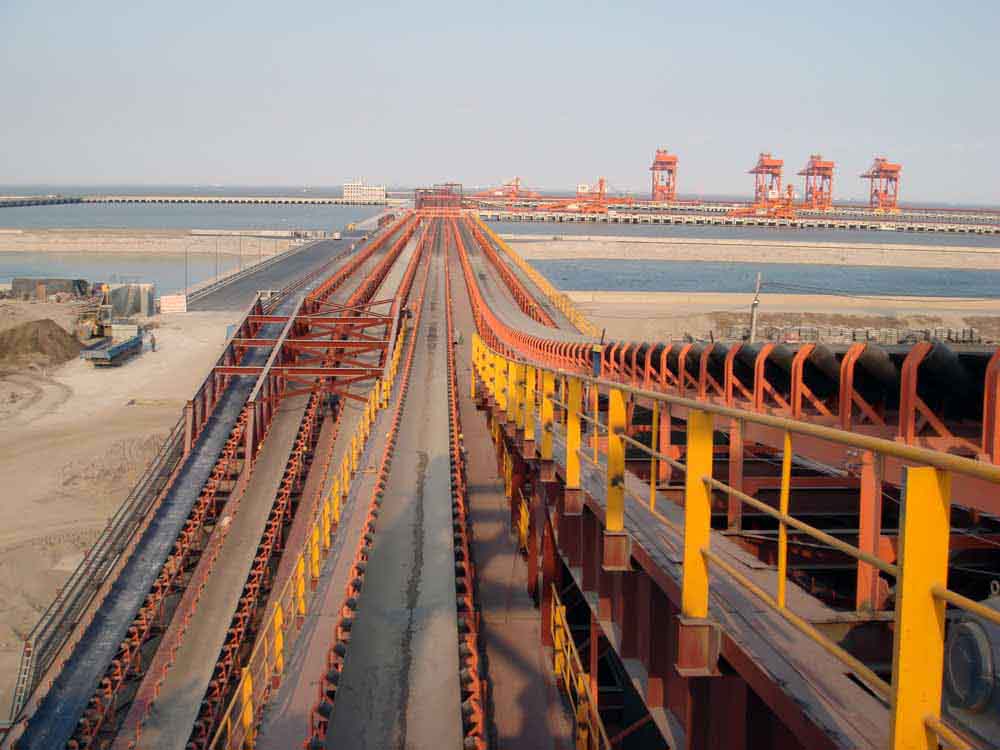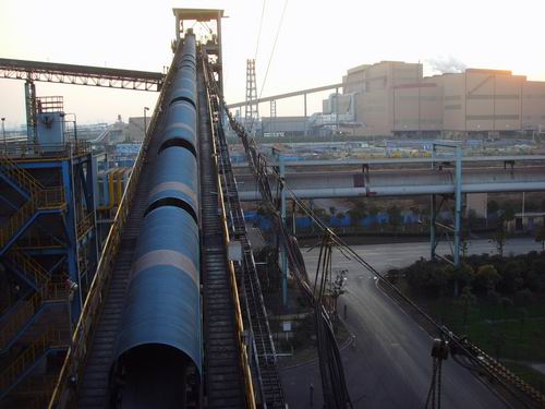 我公司所生產的帶式輸送機,首先是運行可靠,在許多需要連續(xù)運行的重要的生產單位,如發(fā)電廠煤的輸送,鋼鐵廠和水泥廠散狀物料的輸送,以及港口內船舶裝卸等均采用帶式輸送機。其特點動力消耗低,使用過程中阻力小,對貨物的磨損和破壞均小,生產效率高。不僅在煤廠、鋼鐵廠和礦廠運用輸送機,還在小型隧道內均可以使用,長度短則幾米,長可達10米以上,也可以架設在地面交通混亂和危險地區(qū)的上空。如在一點或多點受料.也可以向多點或幾個區(qū)段卸料,需要時,還能把各堆不同的物料進行混合。