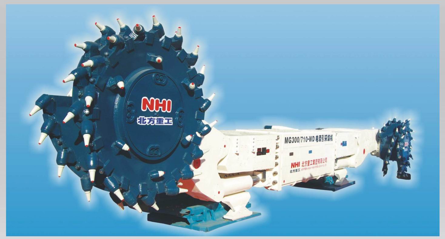 NHI developed MG450 (400)/1100(930) –WD and MG300(250)/710(610)-WD series AC electric haulage shearer on the basis of other advantaged technology of shearer. MG450 (400)/1100(930)-WD electric haulage shearer is a multi-motor drive type electric haulage shearer with motor horizontal layout and variable frequency electric shearer. It could be applied to the working surface angle≤35° of fully mechanized coal face and cutting hard coal, parting with different slot width 830-1000mm supporting the use of transport aircraft. It adopts entirety bent swinging arm structure which of good rigidity and more space of coal passing.